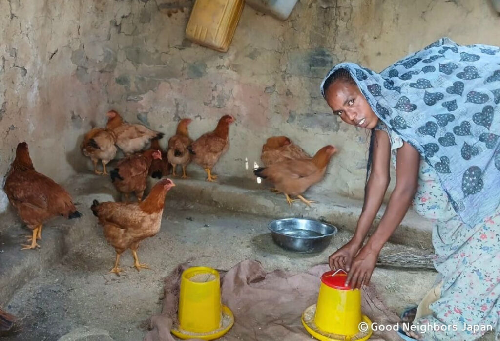 グッドネーバーズ・ジャパンは、このように人道的な支援ニーズが今なお高い状況を受け、生計回復による早期復興が重要課題とされている地域の一つであるエンデルタ郡において、支援を実施しました。特に被害の大きかった5つの村を対象に、畜産や養蜂、養鶏といった生計手段の回復と、住民同士が支え合う貯蓄信用組合の機能回復を通じて、紛争以前の経済活動を取り戻すことを目指しました。