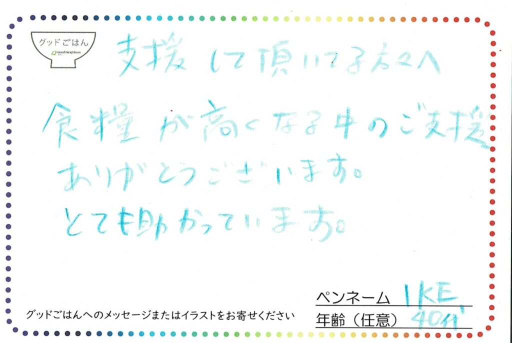 【グッドごはん】利用者さんからのおハガキ①