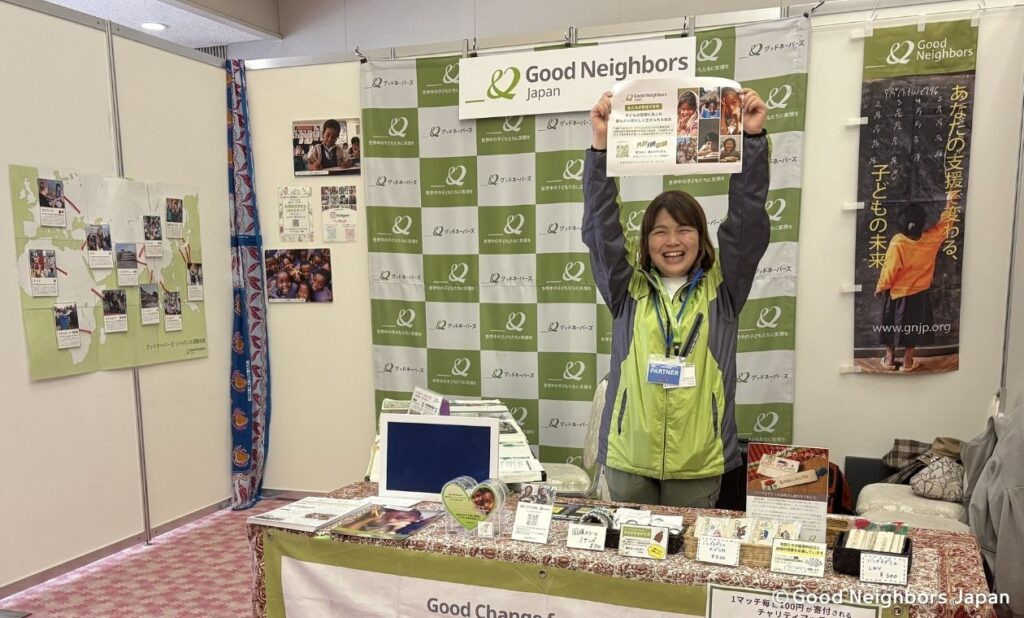 GNJPのブースでは活動紹介に加え、活動国で作られた製品の販売も行いました。来場者が足を止めて話を聞いたり、商品を購入してくださる方の姿も見られました。