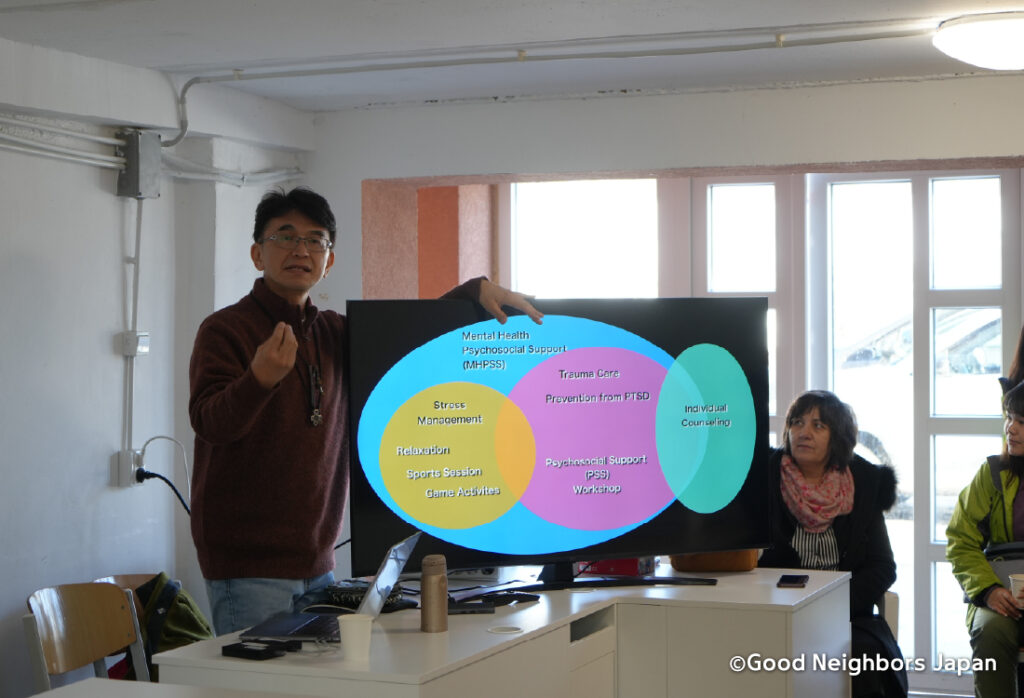 桑山先生には、GNJPがウクライナや能登半島でPSS事業を実施する際に、スタッフへの専門的な指導・研修、子ども向けPSSプログラムの監修を行っていただいております。