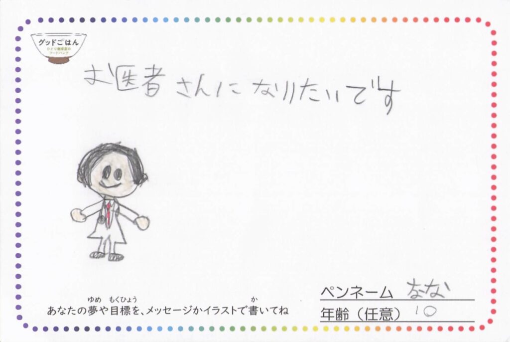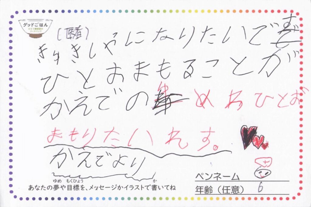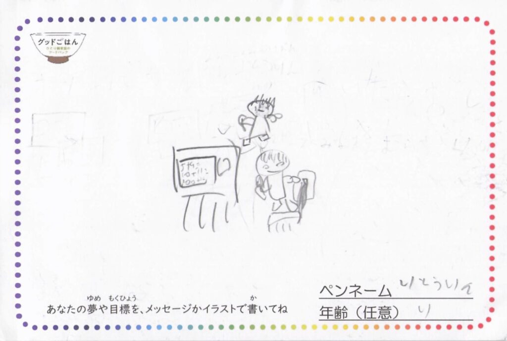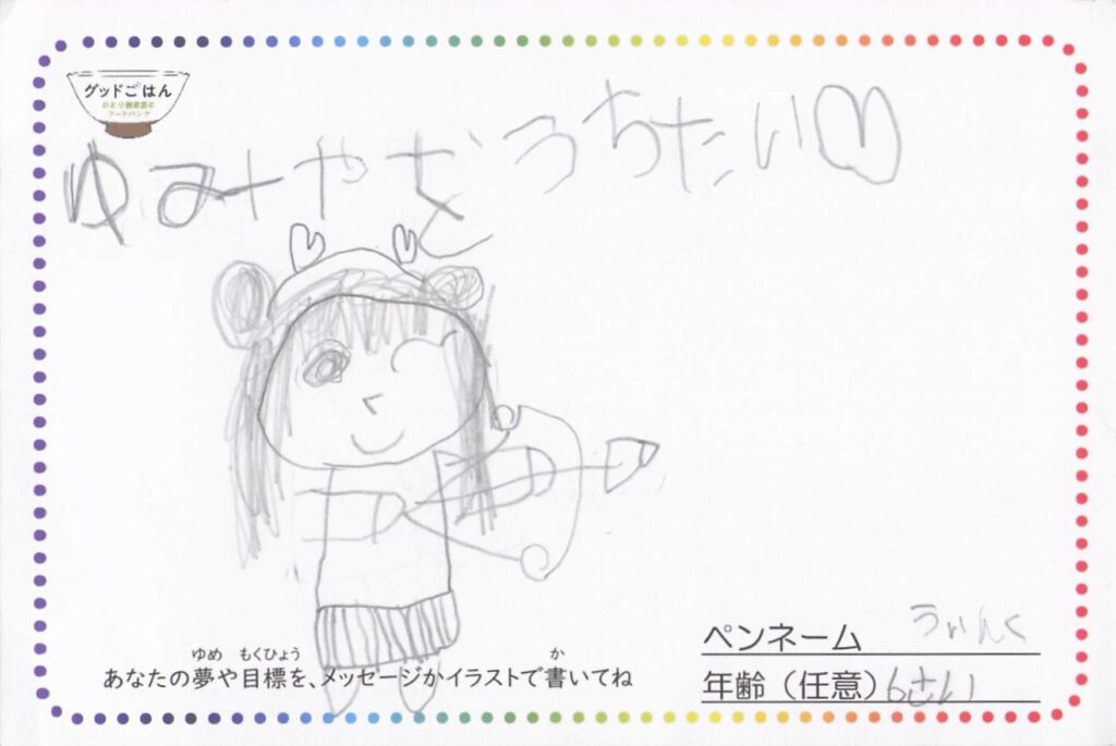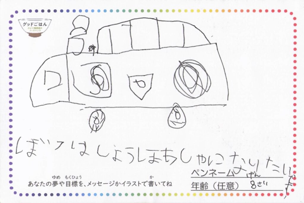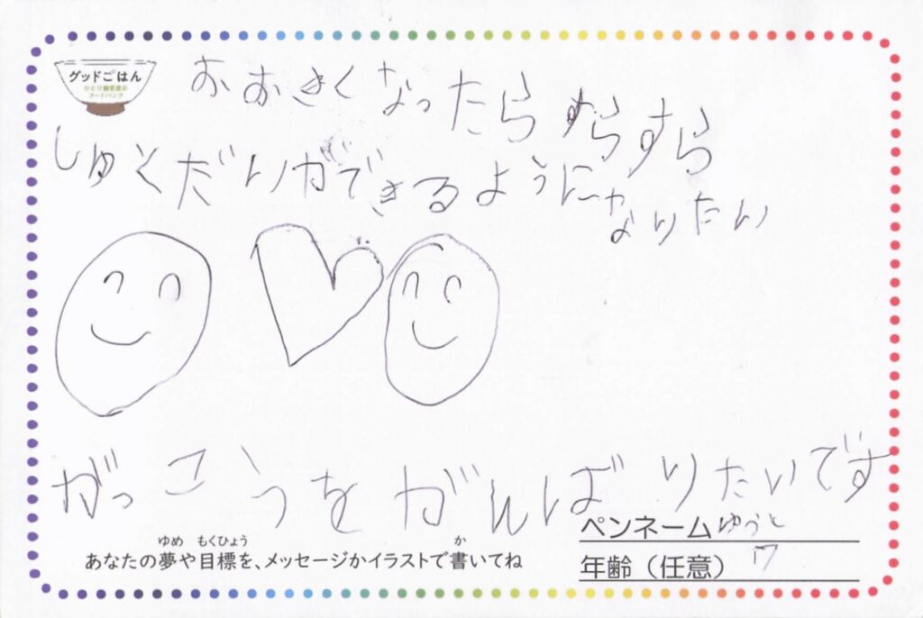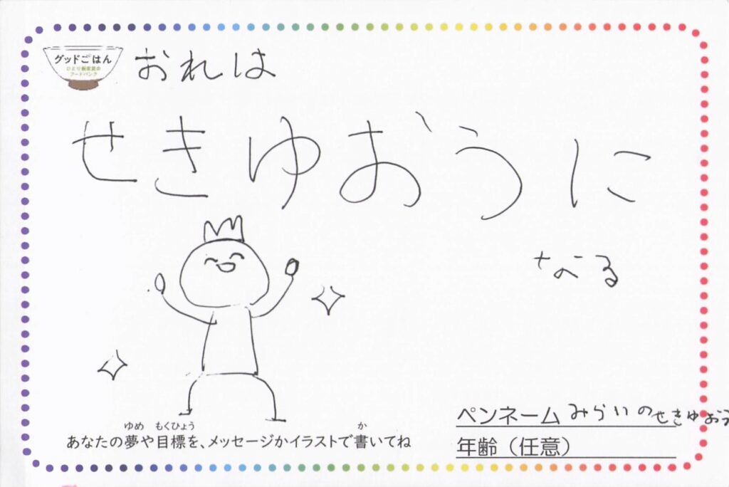 グッドごはんの食品を受け取った子どもたちに、夢や目標を文字やイラストで表現していただきました。