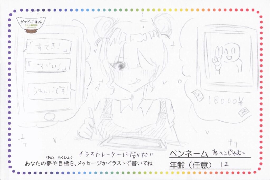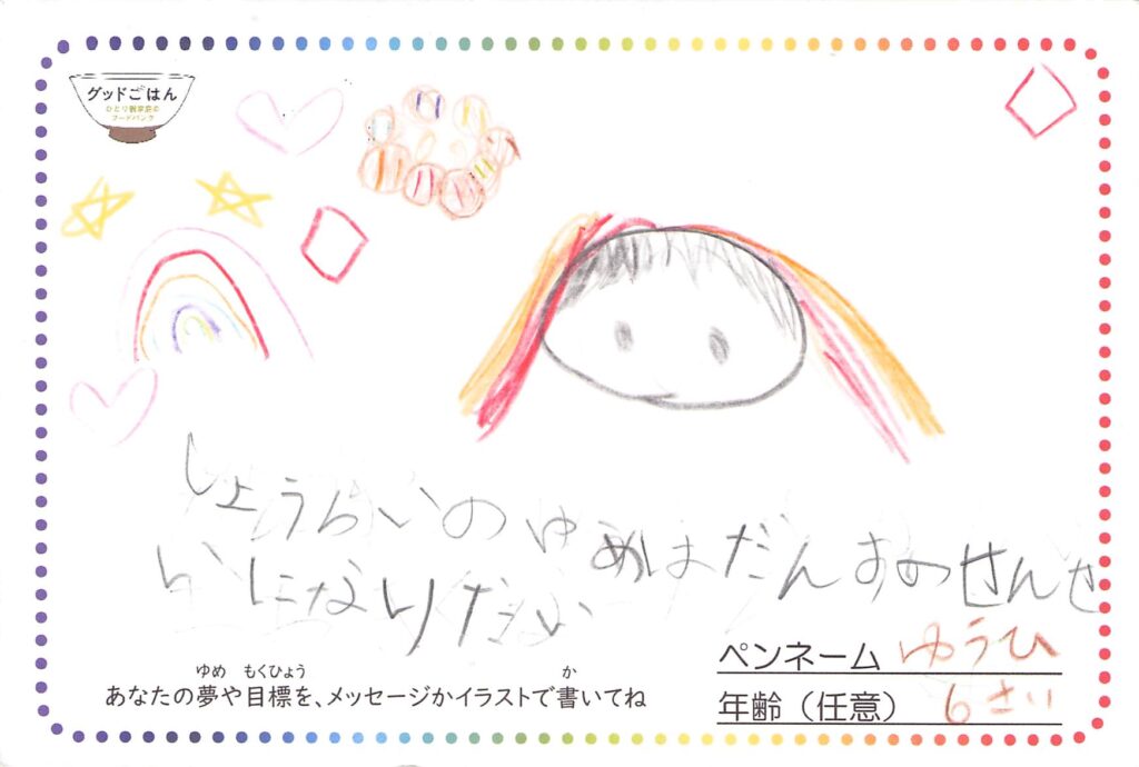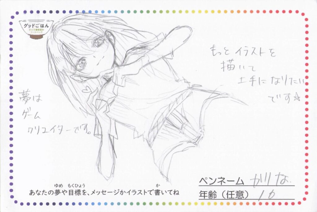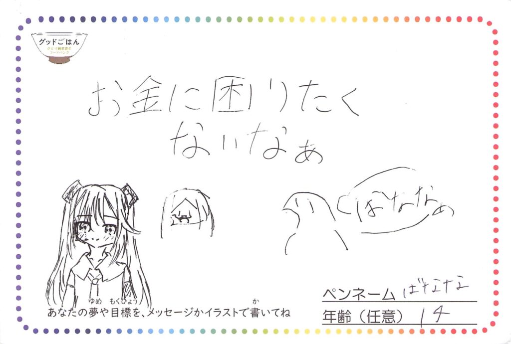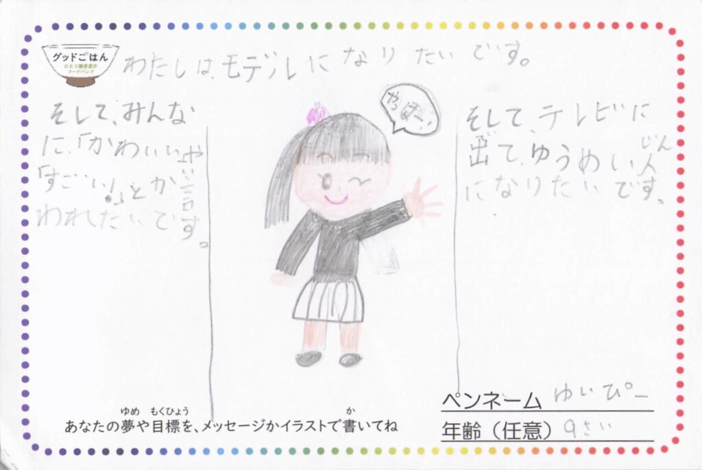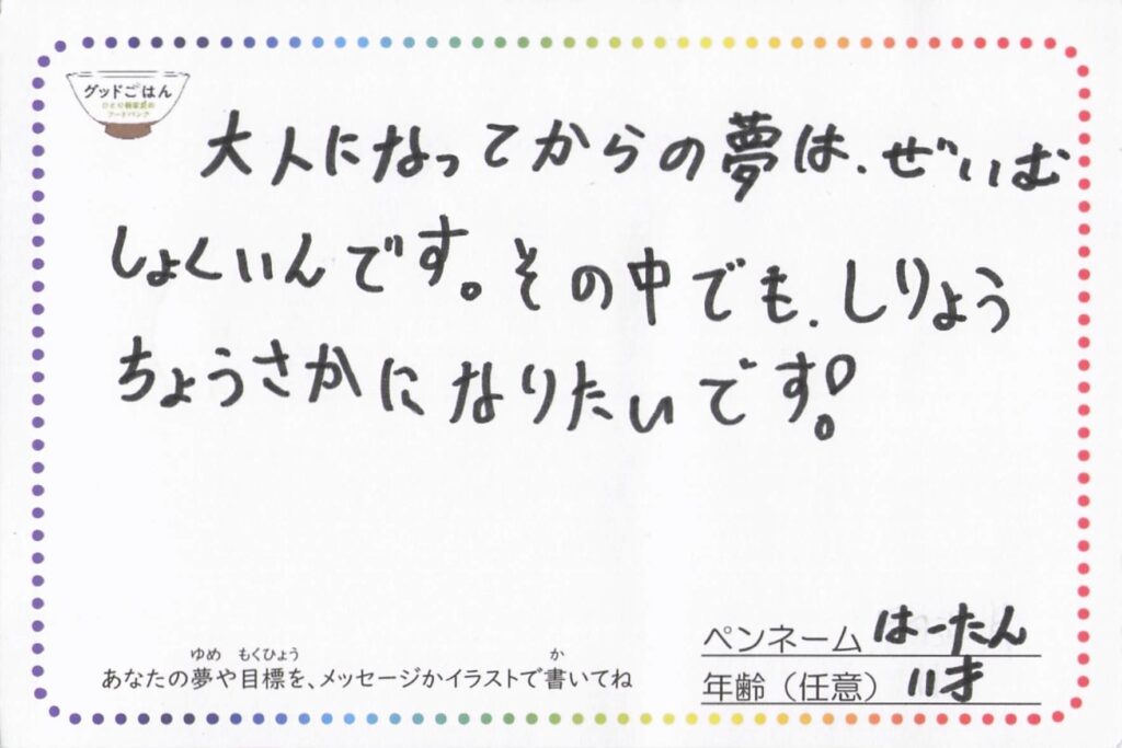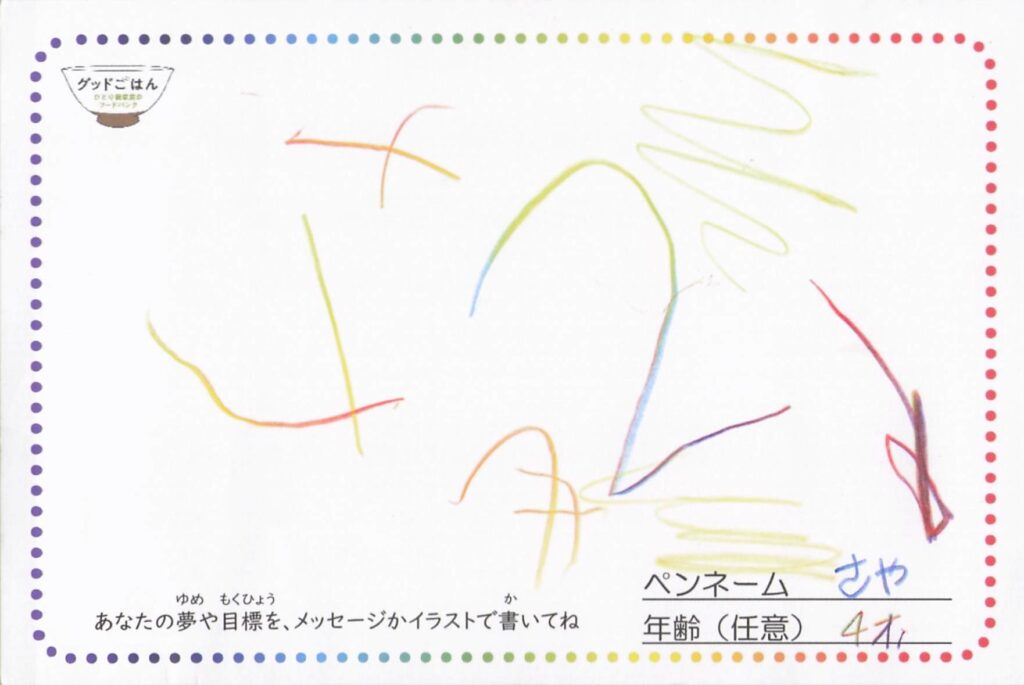 グッドごはんの食品を受け取った子どもたちに、夢や目標を文字やイラストで表現していただきました。