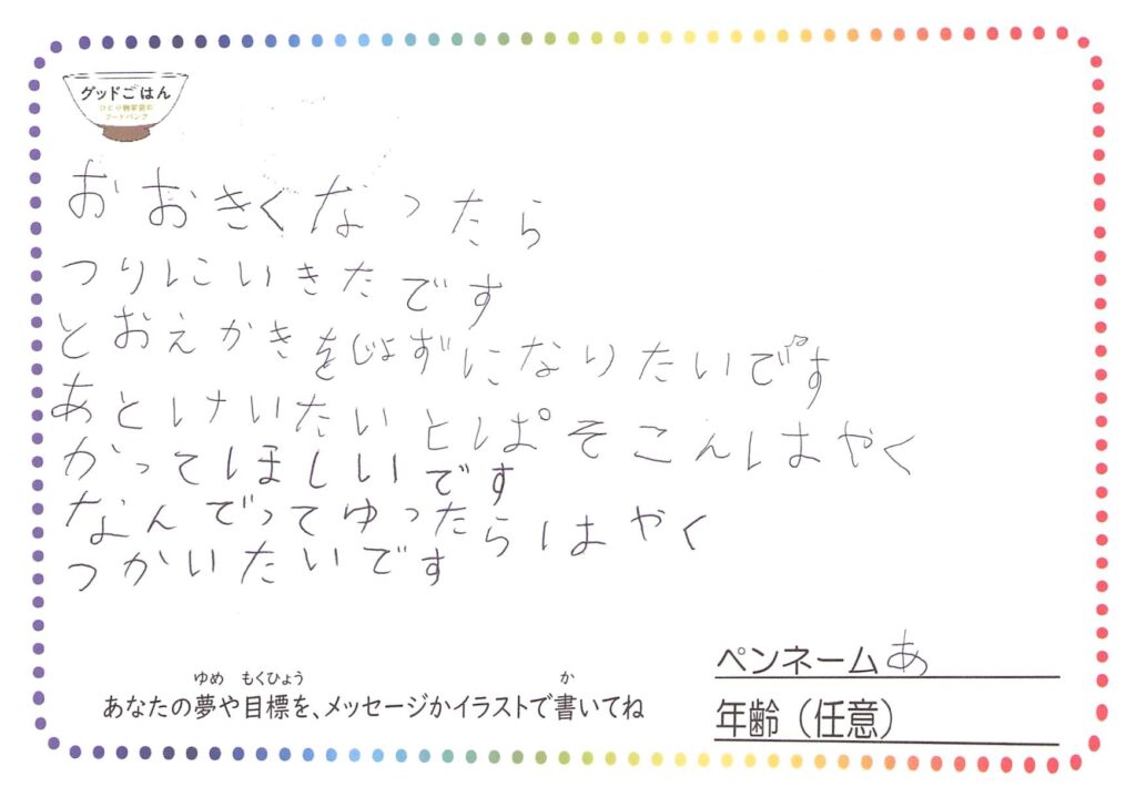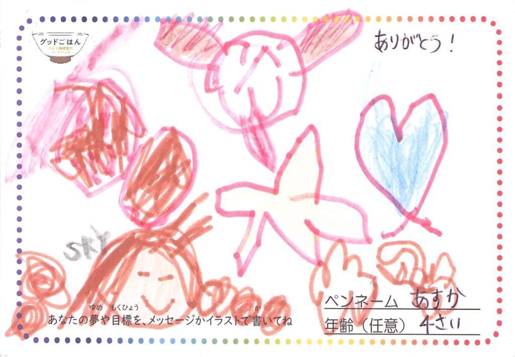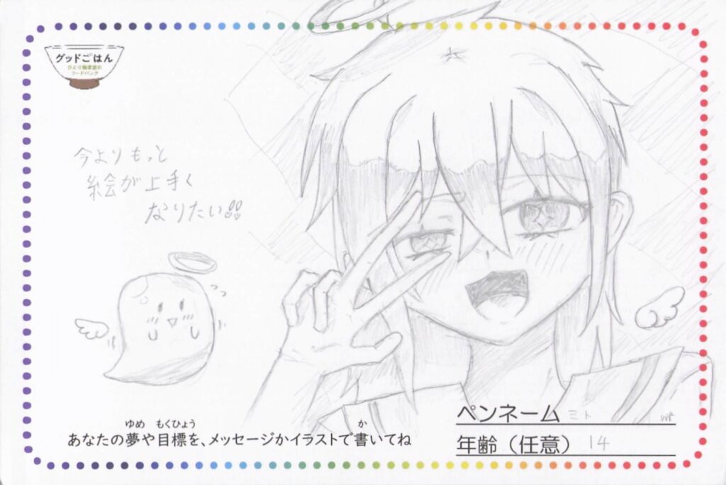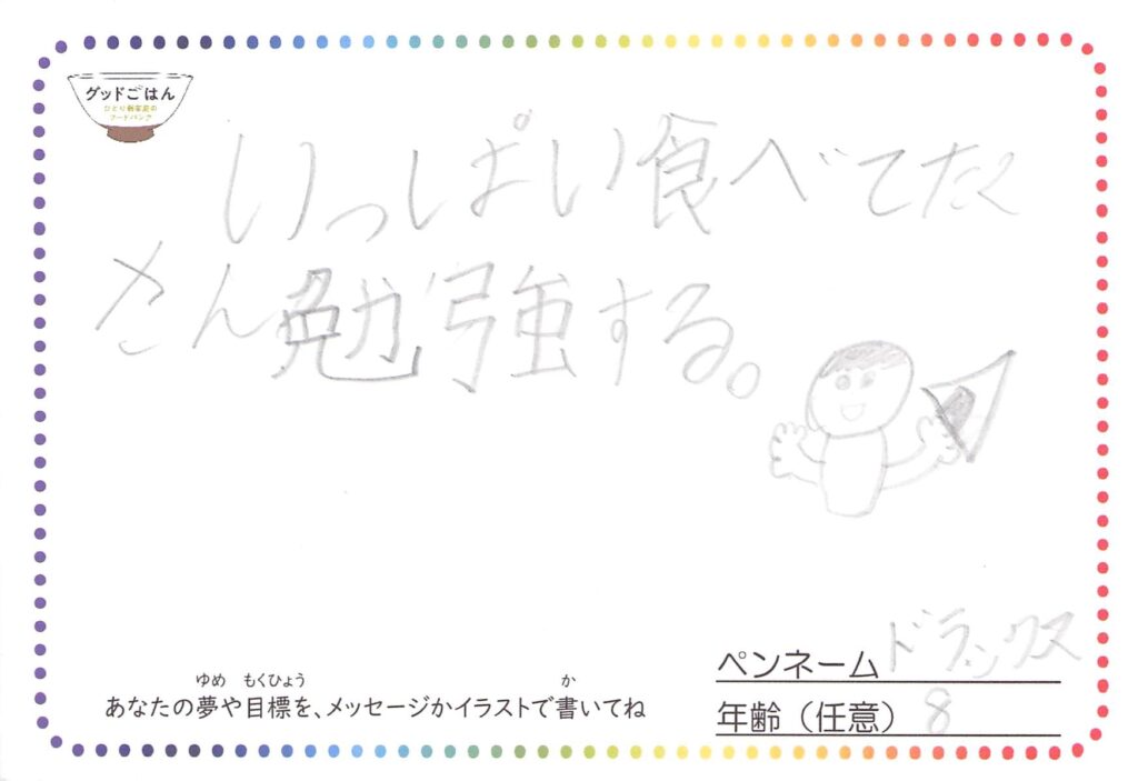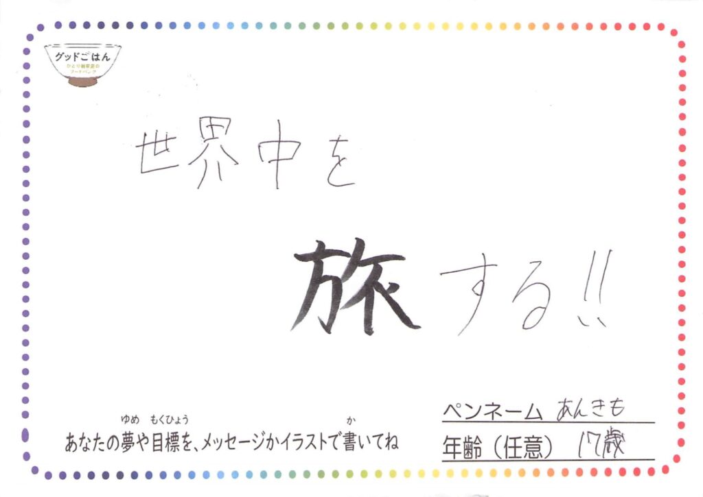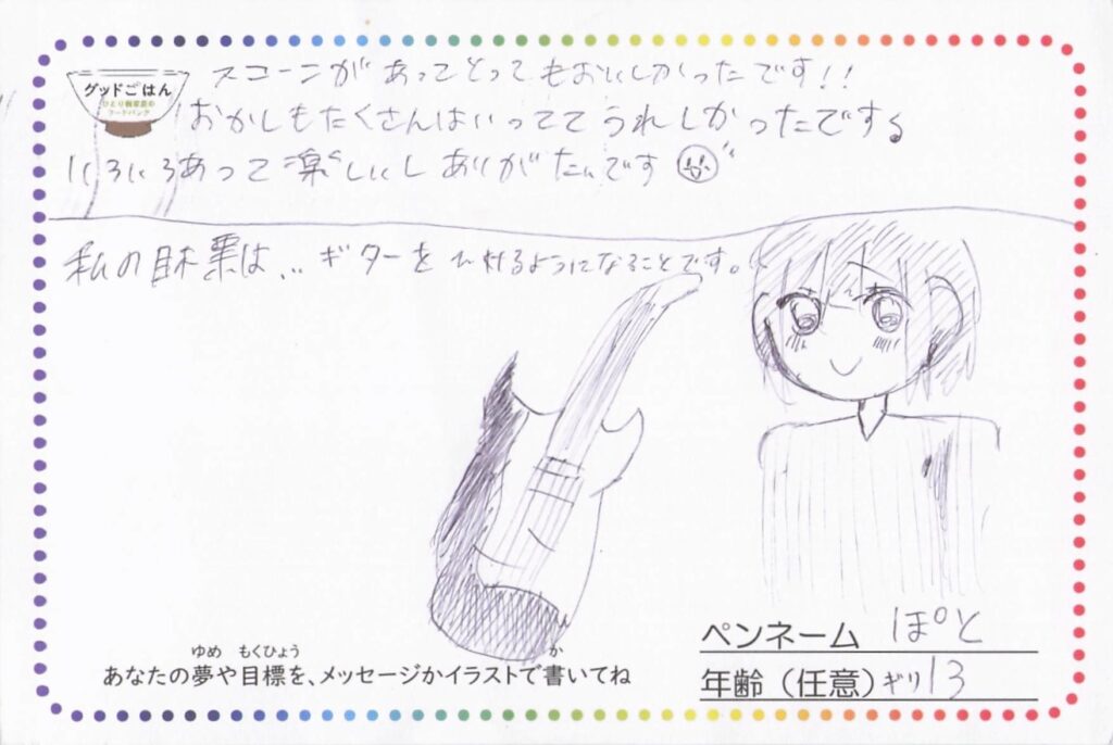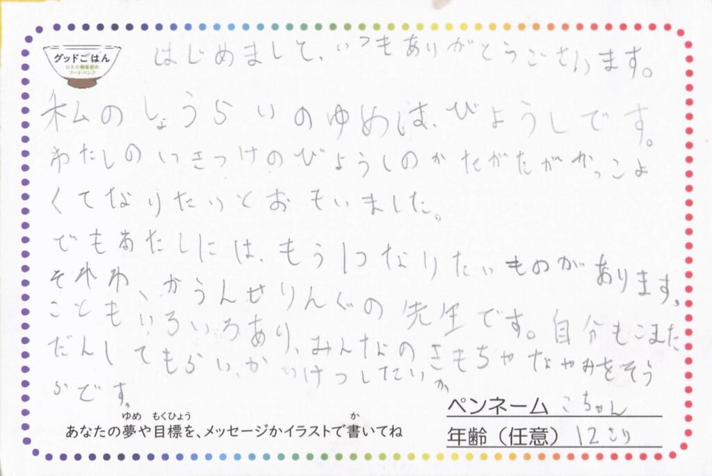 グッドごはんの食品を受け取った子どもたちに、夢や目標を文字やイラストで表現していただきました。