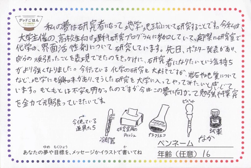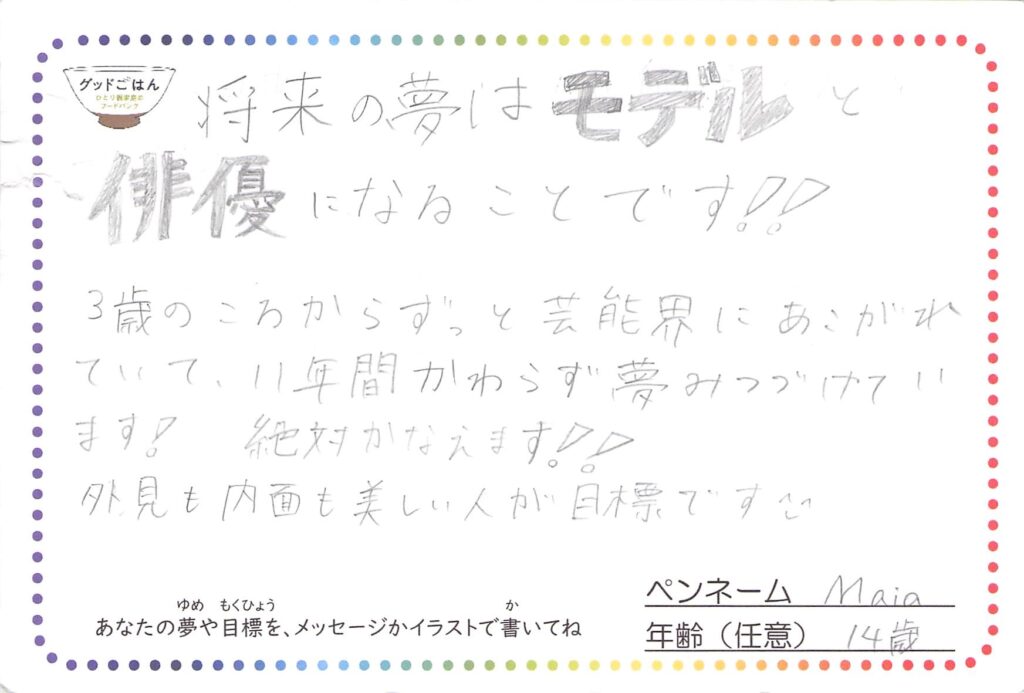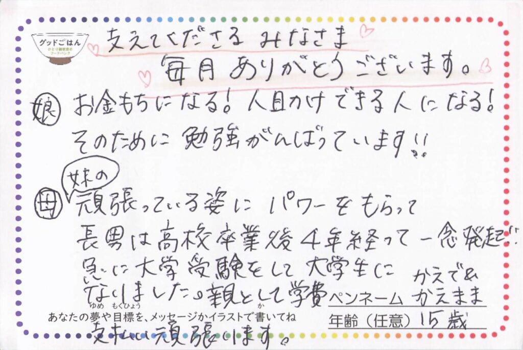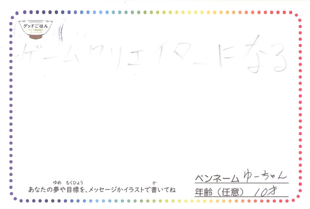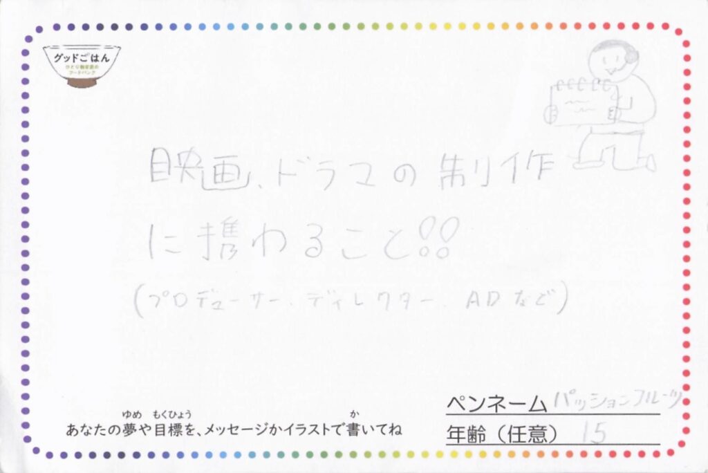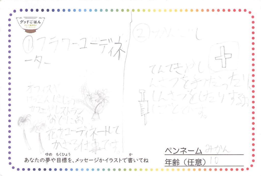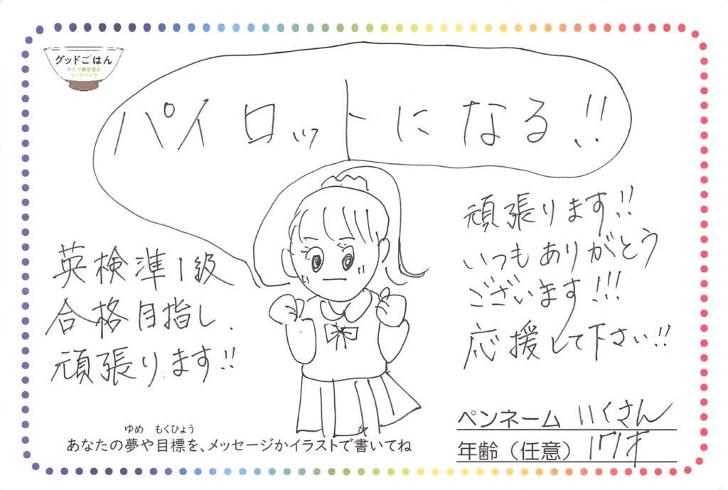 グッドごはんの食品を受け取った子どもたちに、夢や目標を文字やイラストで表現していただきました。